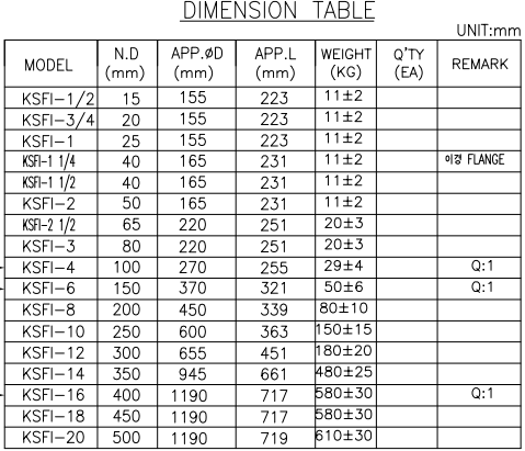 • 표준 플랜지: KS10K R.F