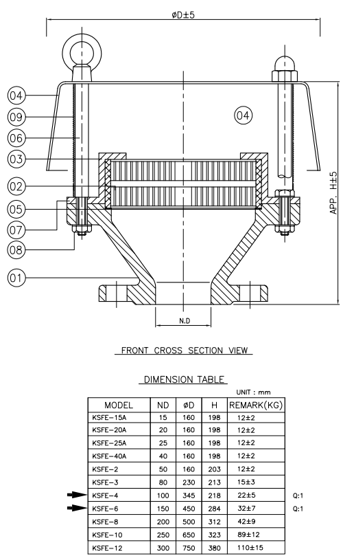 | 100~1,000㎘ | 3~6인치 | KSFE | 플랜지 |
