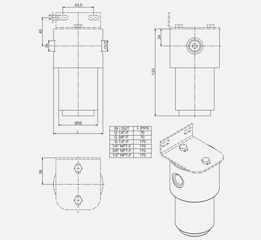 | G 1/4"-F | 70mm | 소용량 정밀 여과 |