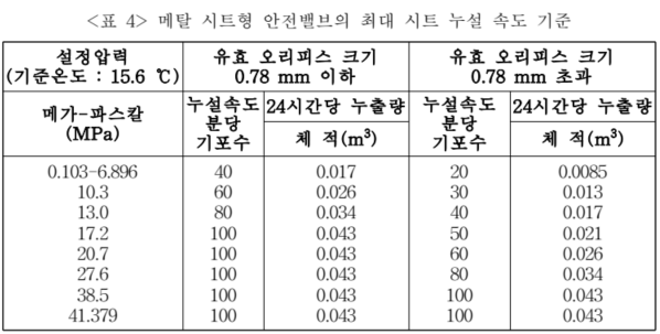 설정압력이 0.103 MPa(gauge) 미만 또는 41.379 MPa(gauge) 초과인 경우 본 지침 적용 제외됩니다.