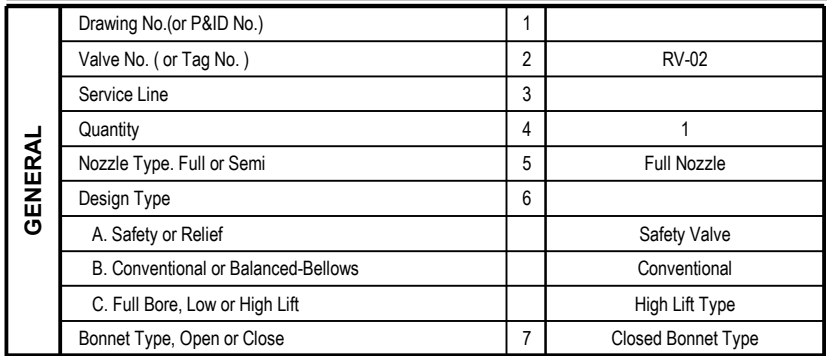 - Valve No.(or Tag No.): RV-02 (안전밸브 태그 번호)