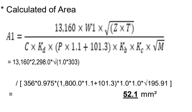 - 설계 여유도: 선택 면적(A)이 계산 면적(A1)보다 큰 것은 안전 여유도를 확보한 것입니다.