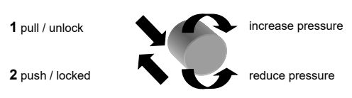 1 당기기/잠금 해제 → 압력 증가 2 누르기/잠금 → 압력 감소