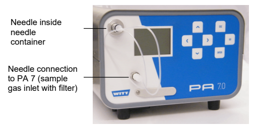 • 분석기를 전기 충격 손상으로부터 보호하세요 • 호스를 점검하고, 꺾이거나 결함이 있으면 분석기를 WITT 애프터 서비스에 보내세요