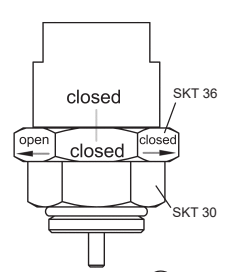 - SKT 30 육각을 고정하고 SKT 36을 "OPEN" 방향으로 회전