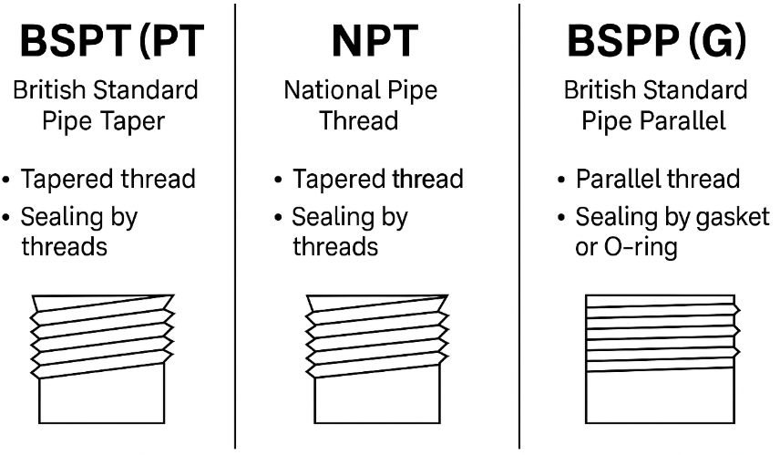 헷갈리기 쉬운 나사산 규격 핵심 정리: BSPT(PT), NPT, BSPP(G)